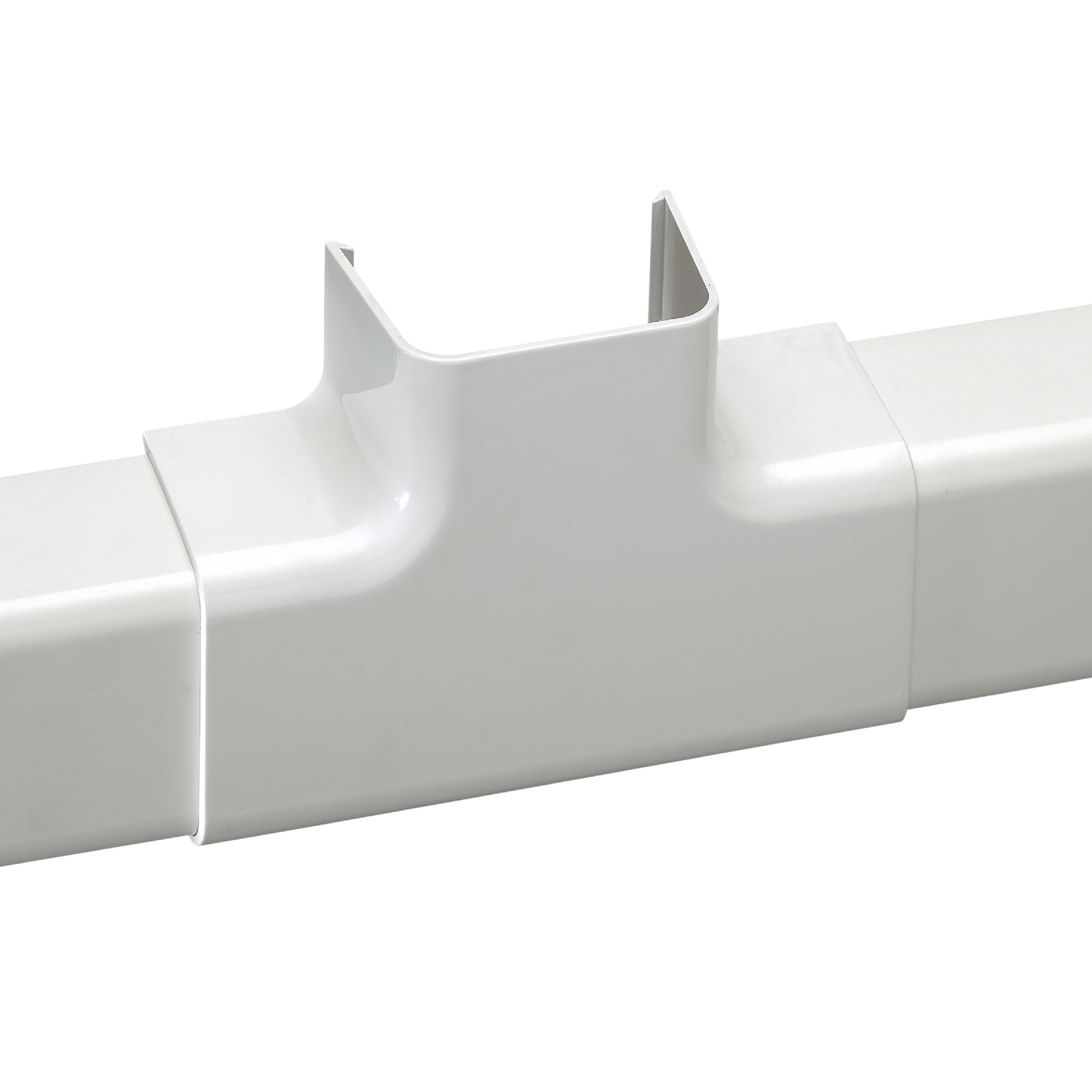 Giunzione a T per derivazioni sullo stesso piano per canali per condizionamento. Aggancio a scatto sul canale.