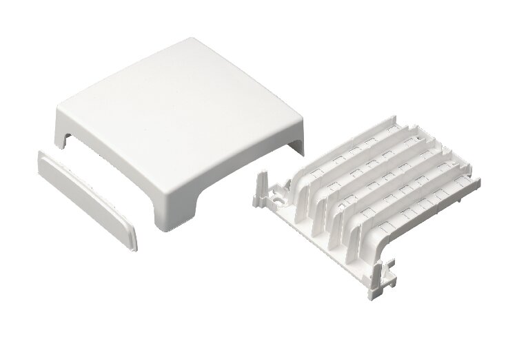 La scatola di derivazione a 3 vie è l’accessorio indispensabile per effettuare derivazioni a “T” dal tratto rettilineo del canale. La pretranciatura interna, sagomata per molteplici dimensioni, facilita l’assemblaggio garantendo, oltre ad un’estetica perfetta, il mantenimento del grado IP. Inoltre si utilizza per derivazioni perpendicolari al piano del battiscopa stesso o per raccordare il canale a pavimento. La griglia interna, con fissaggio a scatto al canale e mediante viti alla parete, evita qualsiasi contatto o accavallamento dei cavi nelle derivazioni. Per riduzione da 130×28 a 70×20 utilizzare: EC20209 o EC20309.