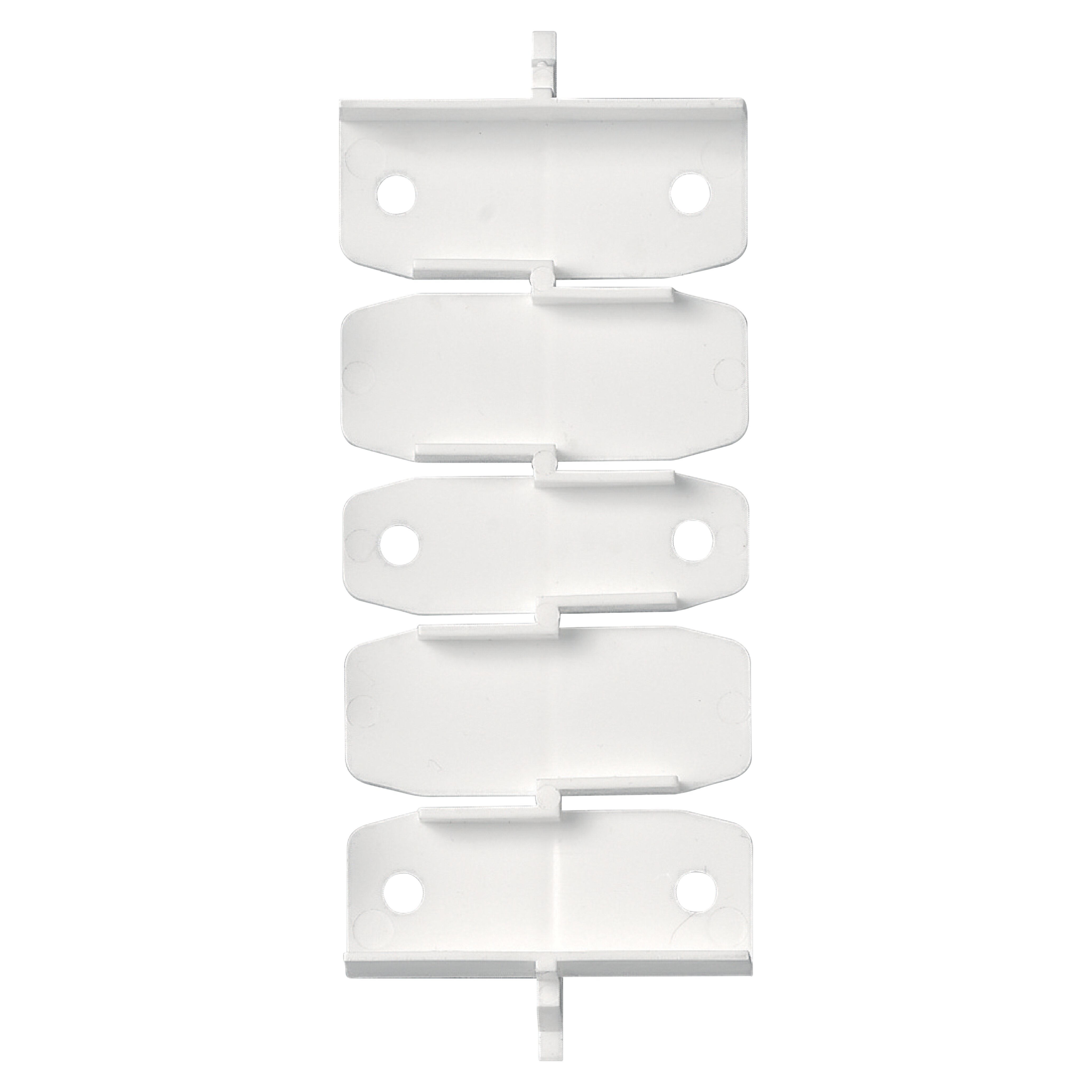 Giunto facilmente fissabile al fondo del canale mediante viti. Si installa internamente al canale. Assicura il perfetto allineamento e la continuità degli scomparti interni.