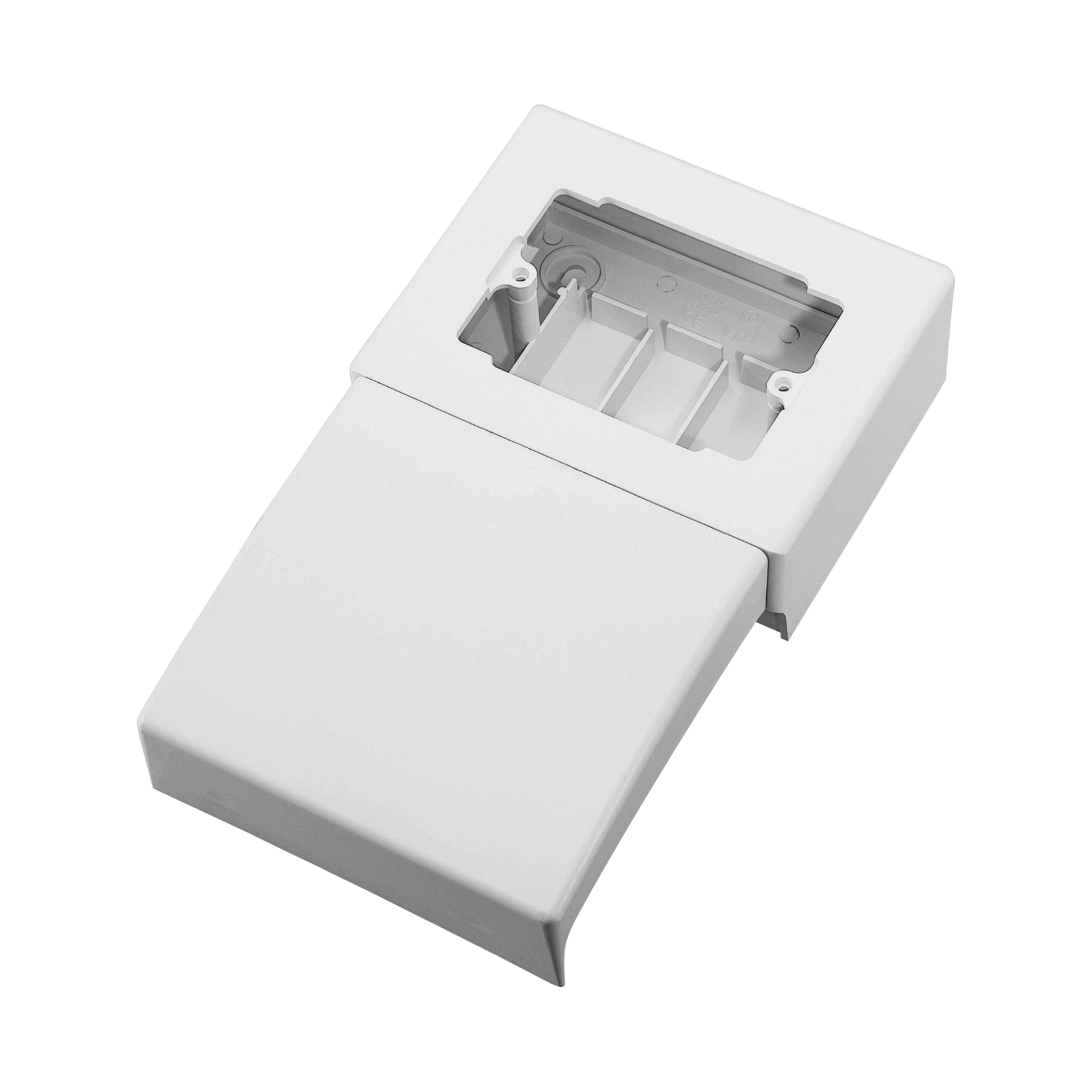 La scatola porta apparecchi interasse 83,5 mm a 3 moduli è utilizzabile per l’installazione delle utenze, fino a 3 apparecchi standard italiano, oppure 1 presa multistandard. L’installazione di qualsiasi apparecchiatura è garantita dall’elevato volume interno. La scatola è composta da tre parti assemblabili: la parte inferiore, fissabile a scatto al canale ed alla parete con 4 viti, che funge da base isolante e da griglia di separazione dei vari circuiti. La parte superiore, opportunamente sagomata per l’alloggiamento dei telai di fissaggio degli apparecchi. Il copricanale che, oltre ad avere funzione protettiva, conferisce all’insieme una forma armonica ed elegante.