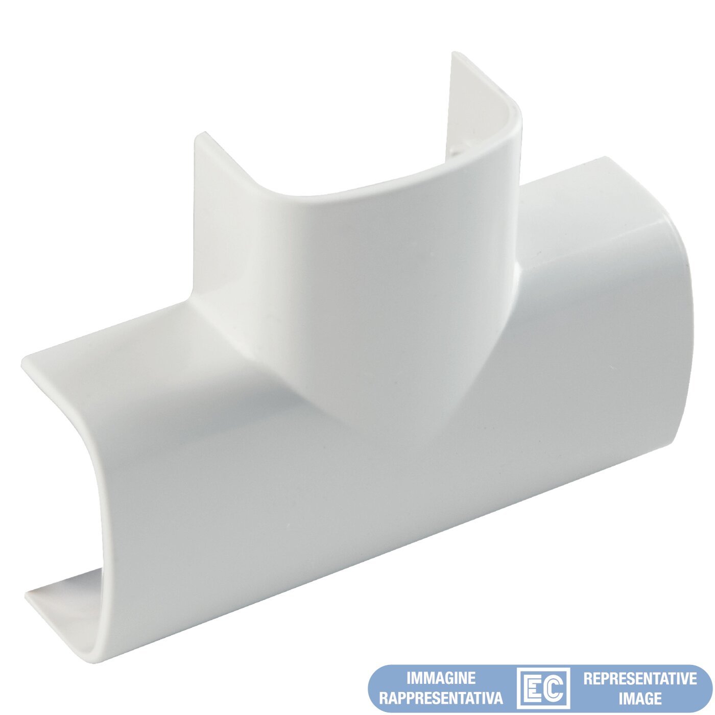 Giunzione a T per derivazioni sullo stesso piano. Aggancio a scatto sul minicanale.