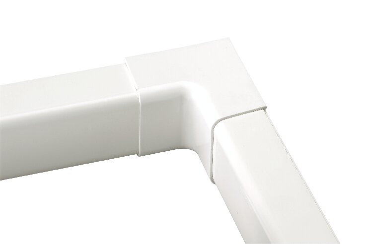 Angolo interno per cambio di direzione a 90° per canali per sistemi di condizionamento. Aggancio a scatto sul canale.