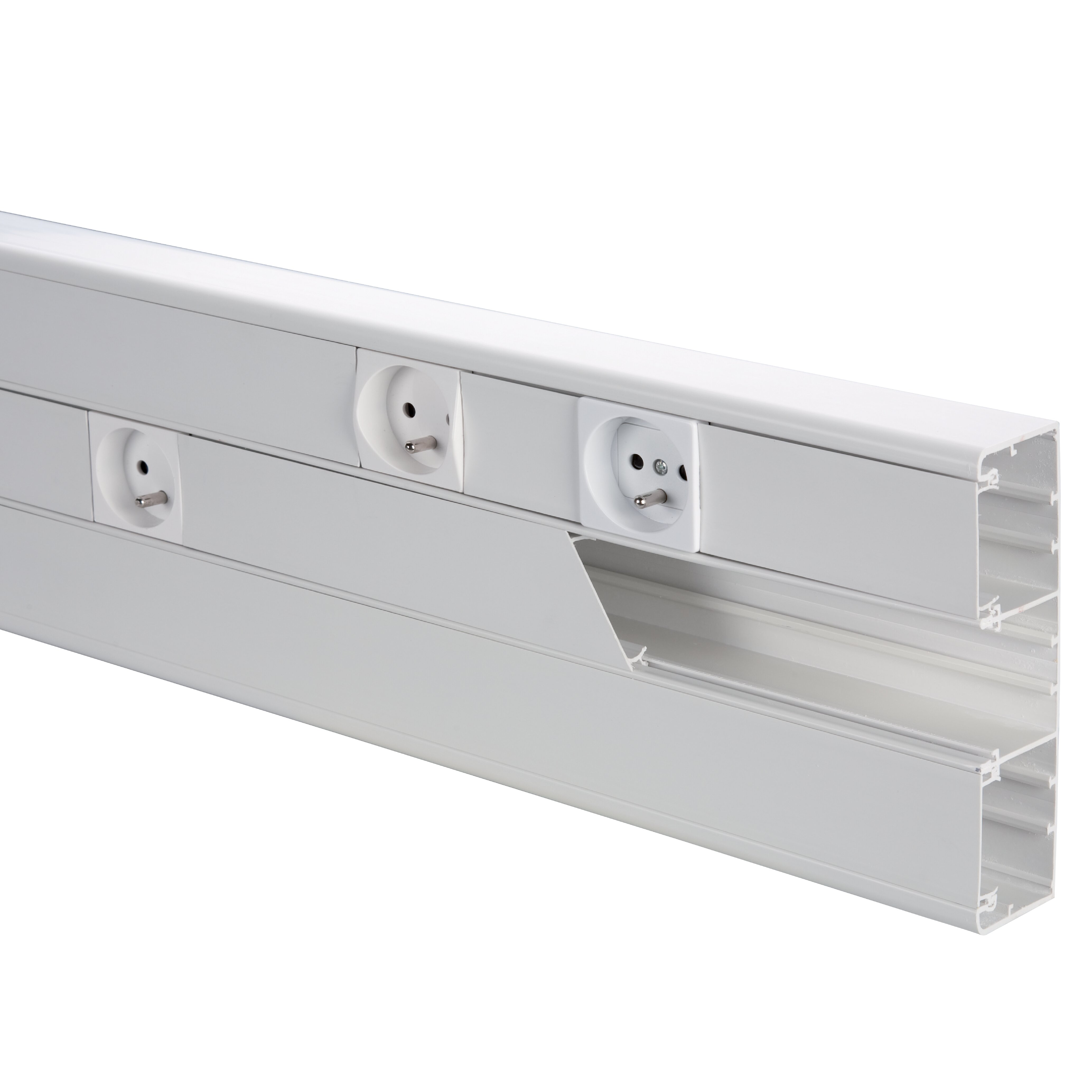 Canale portacavi e portapparecchi prodotto in tecnopolimero a base di PVC rigido autoestinguente. Per apparecchi standard 45×45 mm con fissaggio diretto al canale. Preforatura del fondo per fissaggio con viti e tasselli. Coperchio ad aggancio frontale fornito. Canale e coperchio fornito ricoperto con pellicola protettiva trasparente.