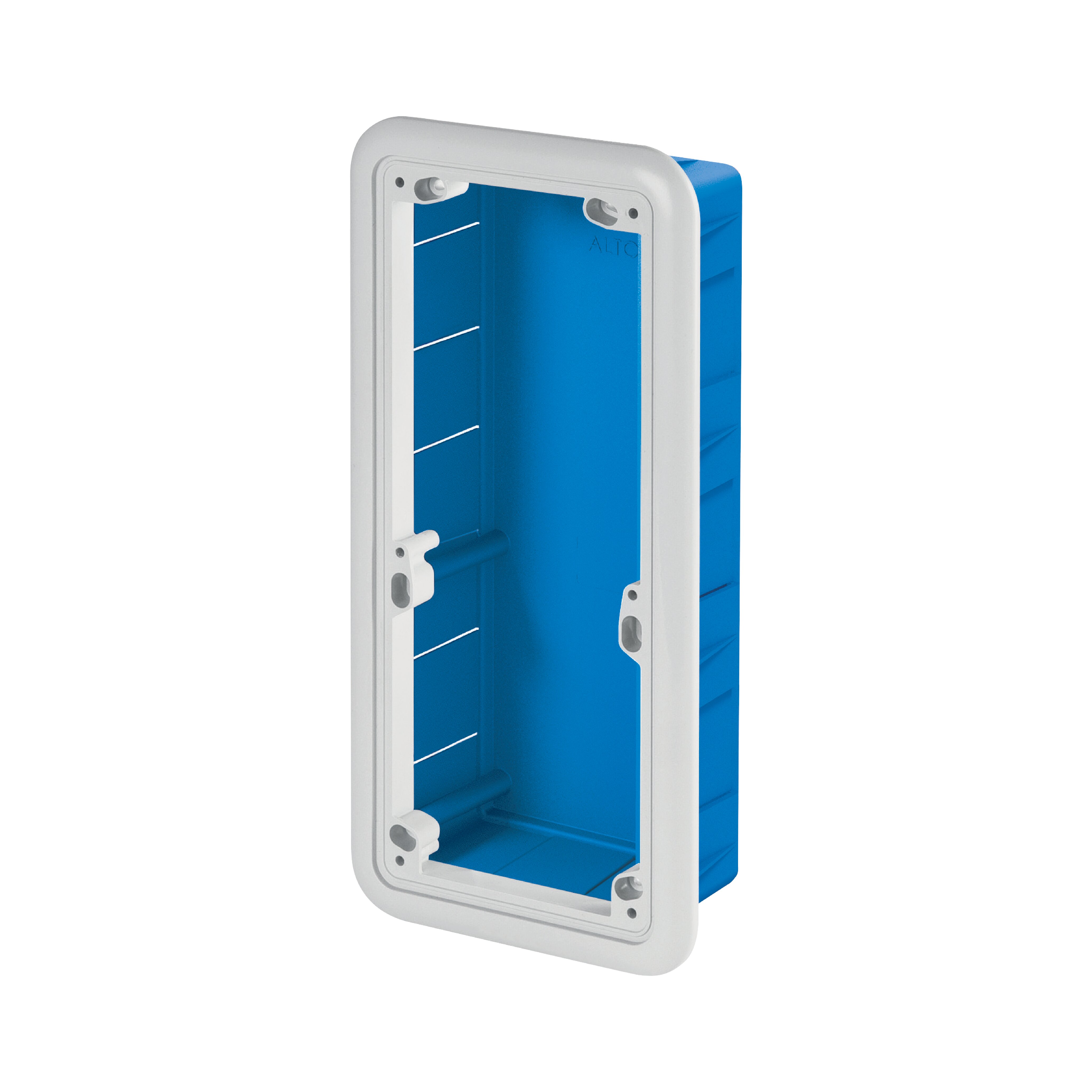 Fondo da incasso per pareti leggere per prese interbloccate verticali con/senza senza base fusibili. Con cornice esterna di finitura e guarnizione a muro. Dimensioni 149x309x80 mm. Prodotto in tecnopolimero antiurto. resistenza al calore anomalo: 850°C (GWT).
