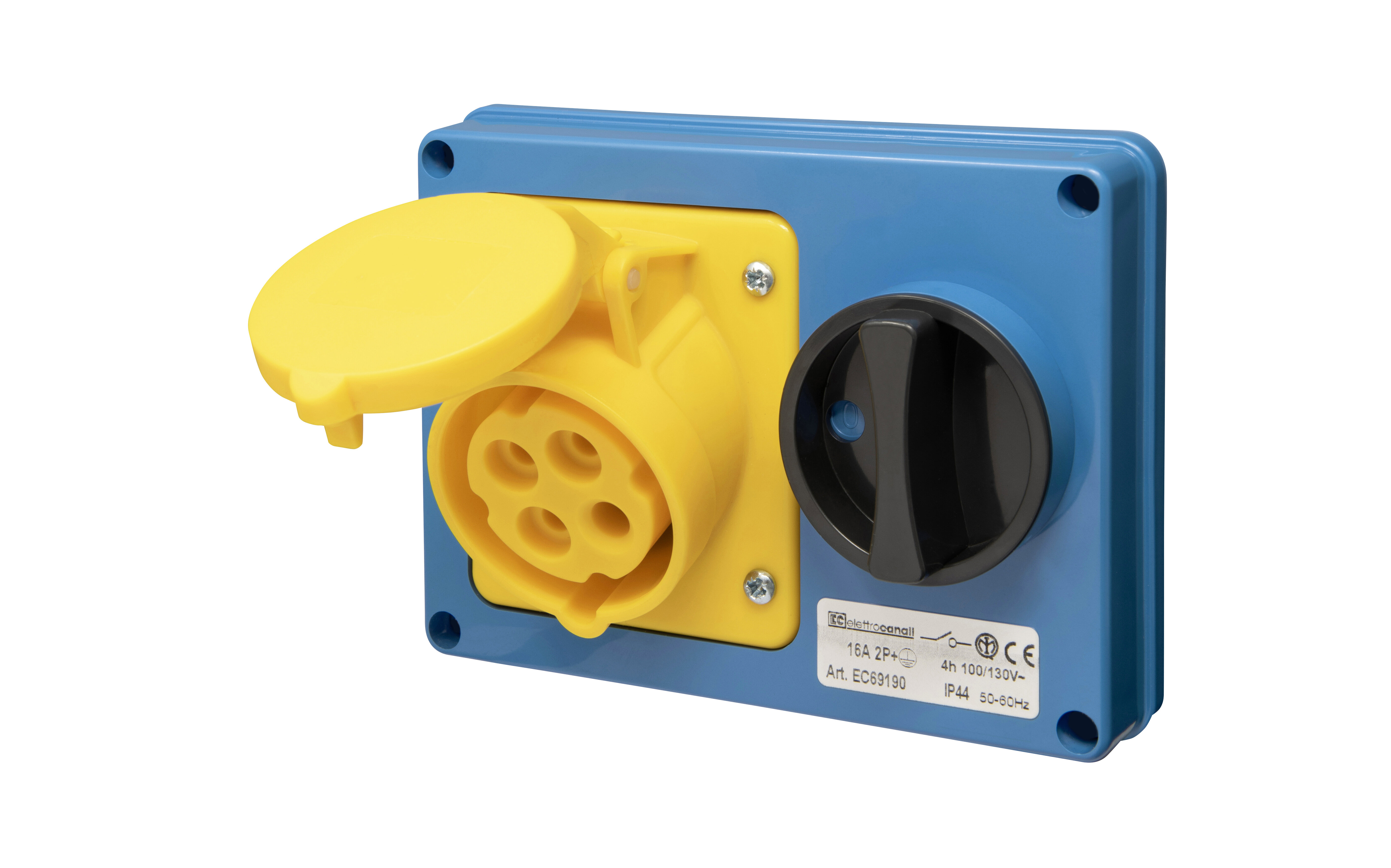 PRESA INTERBL.ORIZ. DA INCASSO 110V 16A 2P+T IP44