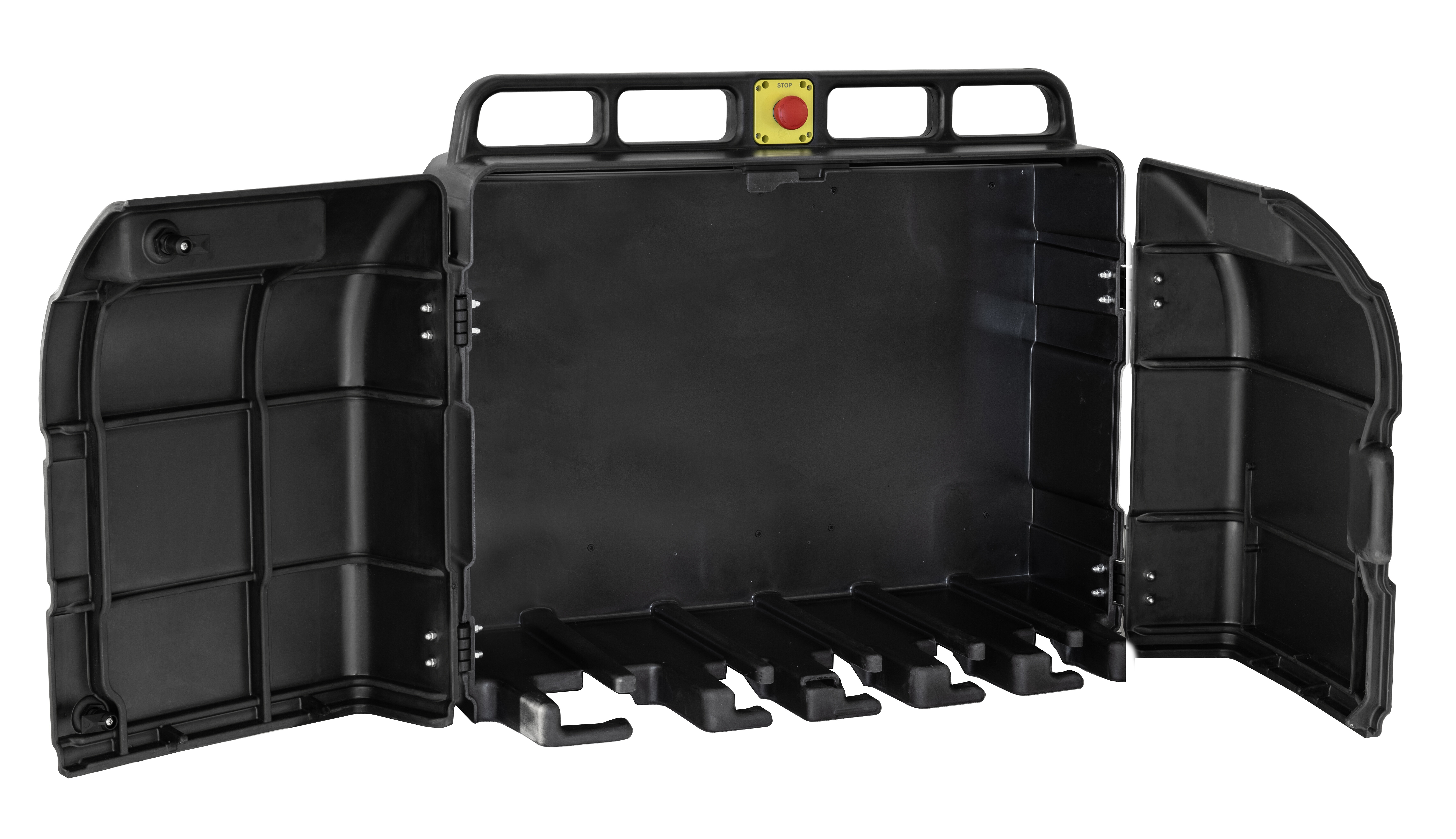 Quadro di distribuzione assemblato in serie tipo ASC. Realizzato in tecnopolimetro bicomponente antiurto. Grado di resistenza agli urti IK10, adatto per impieghi gravosi. Guida DIN in acciaio zincato. Chiusura porta doppia con chiave triangolare in dotazione. Protezioni magnetotermiche delle uscite in centralino con serratura a triangolo, chiave in dotazionie. Possibilità di fissaggio a parete con staffe metalliche o su cavalletto metallico. Maniglie di trasporto integrate nella scocca. Base aperta per uscita cavi di collegamento. Funzionamento con spine inserite anche a porta chiusa. Angolo di apertura porte pari a 180°. Prodotto in conformità alle norme EN60670-1, EN 60670-24, EN 61439-1, EN 61439-4.