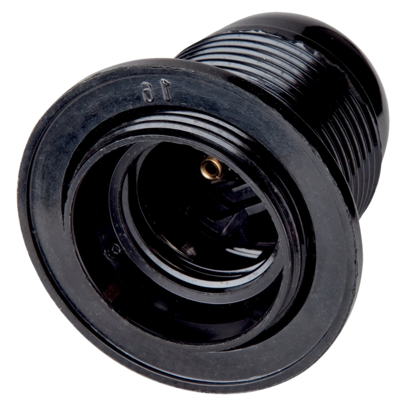 Portalampada E14. Corrente Nominale 2A. Realizzato in materiale tecnopolimero termoplastico. Camicia filettata, con doppia ghiera. Resistenza al calore anomalo (GWT norma IEC 60695-2-11): fino a 650°C. Tensione nominale: 250 V~. Temperatura nominale: T190° C. Grado di protezione: IP20. Inserto in termoplastico con inserti a vite.