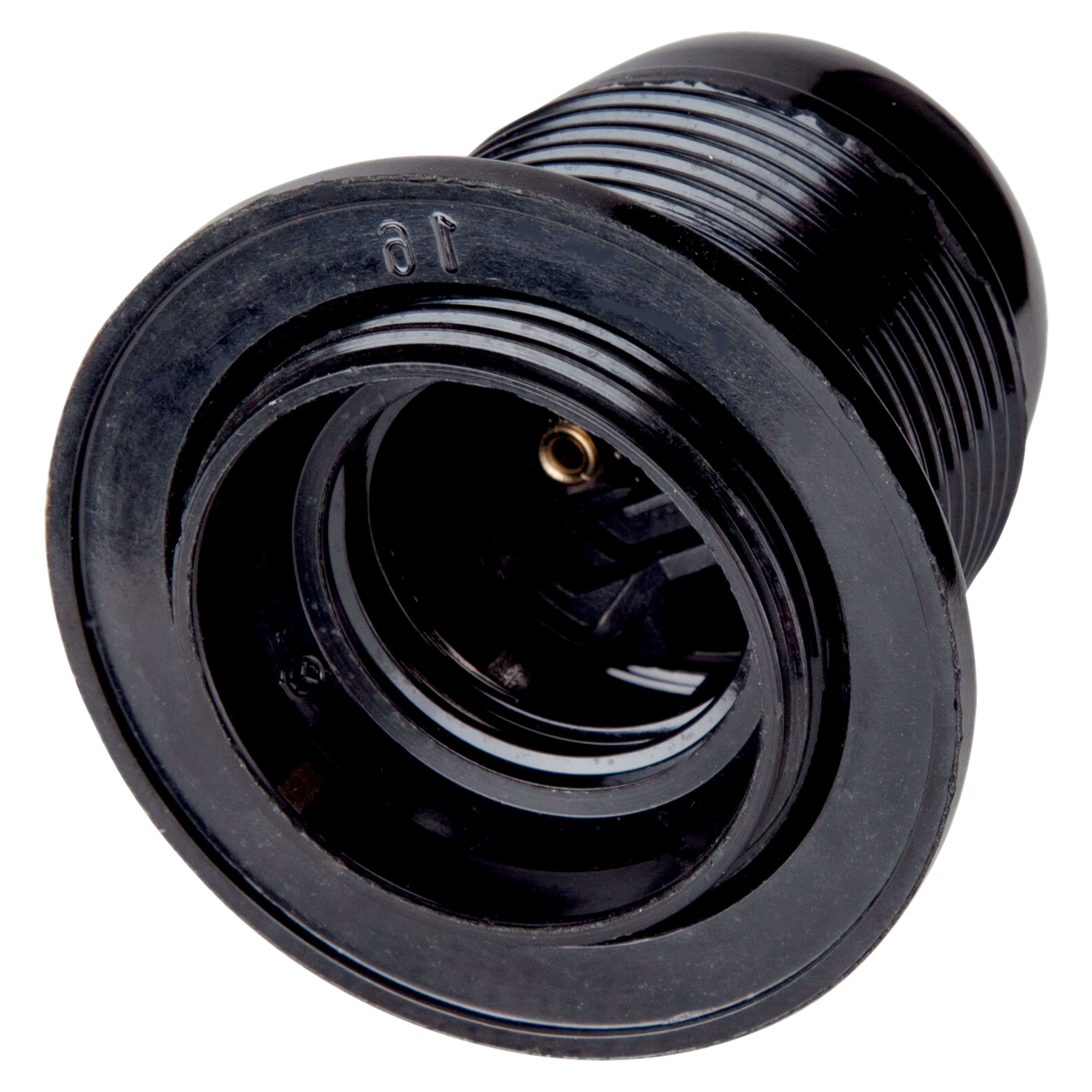 Portalampada E27. Corrente Nominale 4A. Realizzato in materiale tecnopolimero termoplastico. Camicia filettata con doppia ghiera. Resistenza al calore anomalo (GWT norma IEC 60695-2-11): fino a 650°C. Tensione nominale: 250 V~. Temperatura nominale: T190° C. Grado di protezione: IP20. Inserto in termoplastico con inserti a vite.