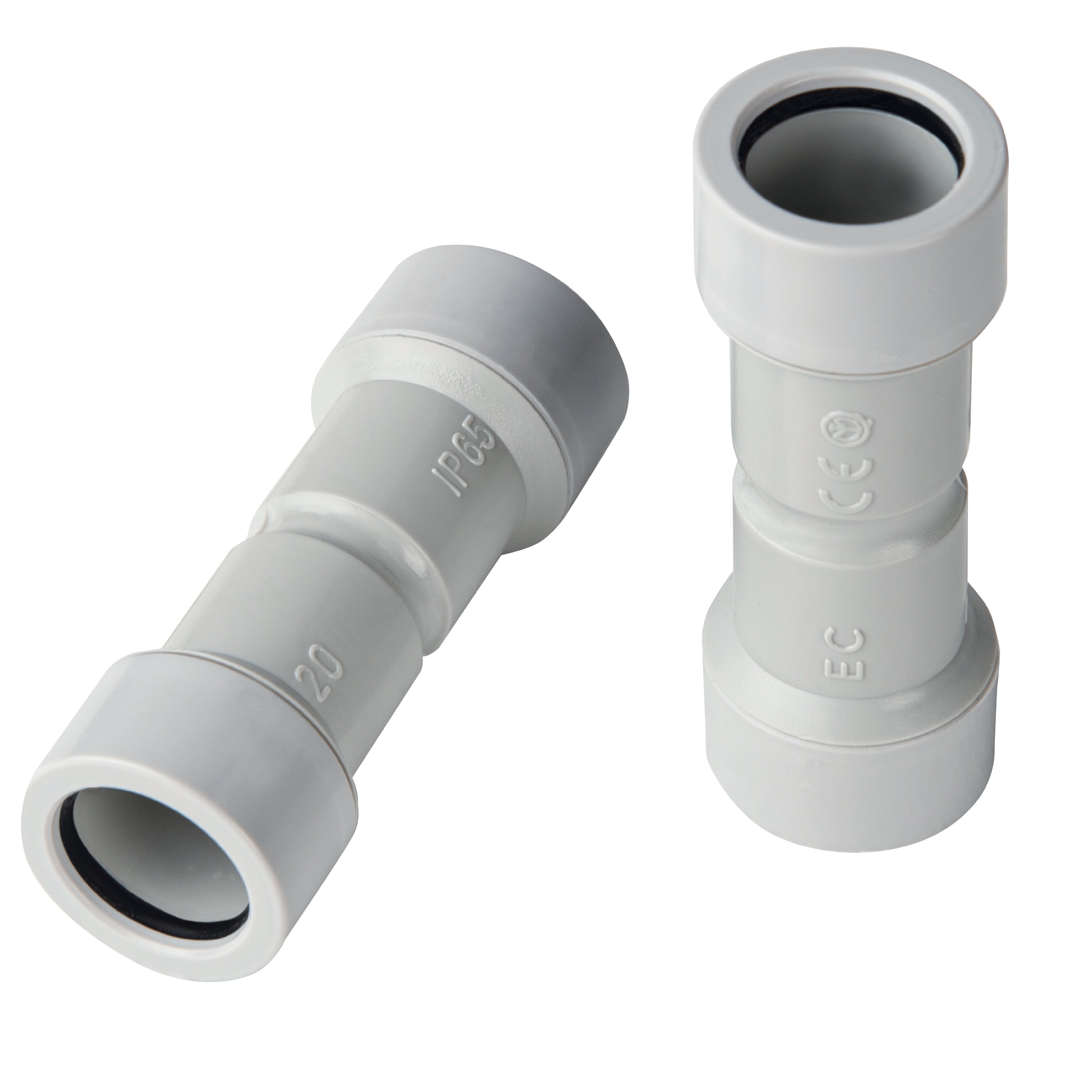 Manicotto per la connessione tra due tubi con identico diametro realizzato in tecnopolimero antiurto a base di PVC rigido. Anello interno morbido di tenuta per compensazione delle tolleranze sui tubi. Grado di protezione IP65. Grado di autoestinguenza V0 secondo la norma UL94. Resistenza al calore anomalo (GWT IEC 60695-2-11): fino a 960 °C. Prodotto in conformità alla norme EN 61386-1, EN 61386-21.
