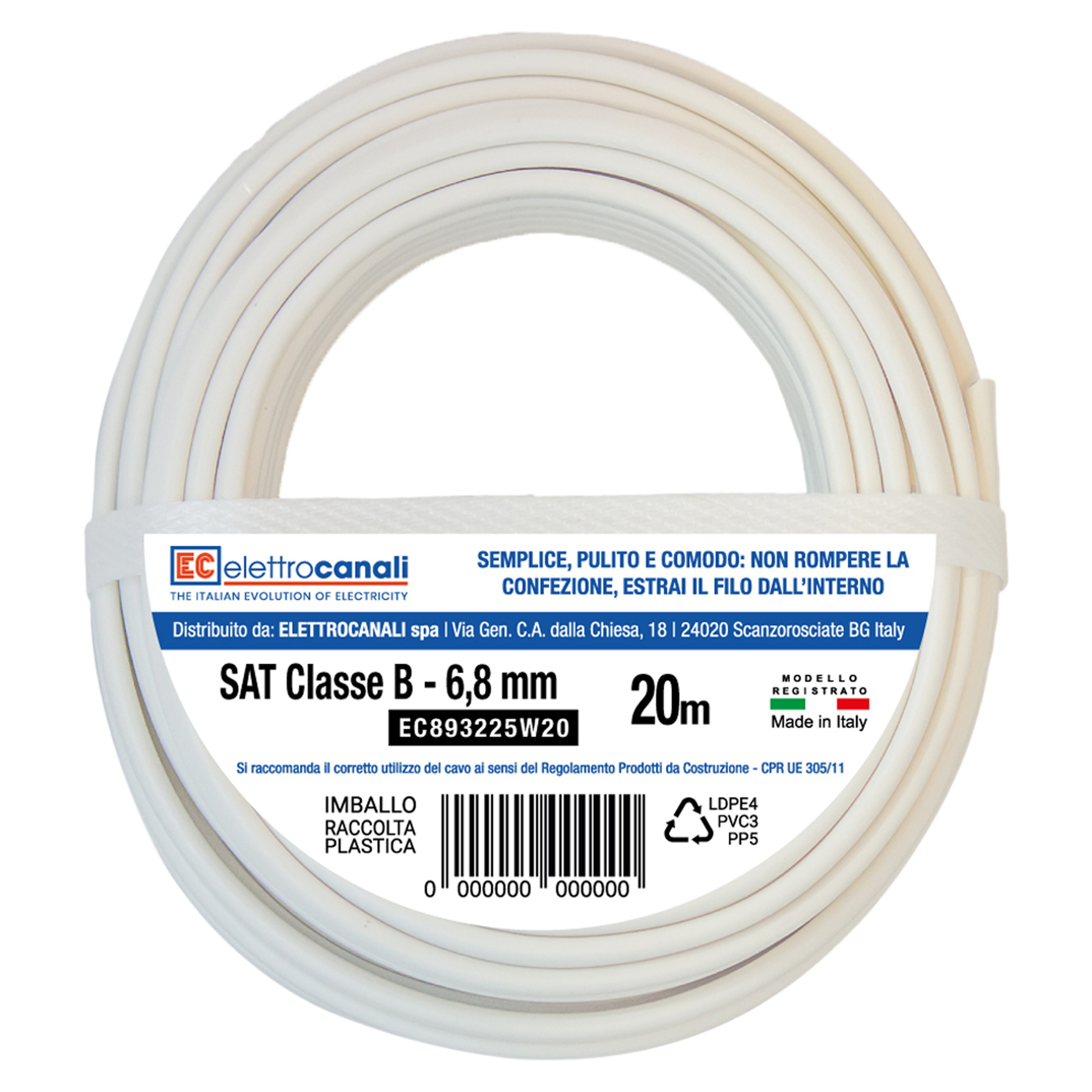 CAVO COASSIALE TV/SAT Classe B – 6,8 mm – BIANCO – MATASSINA DA 20 m