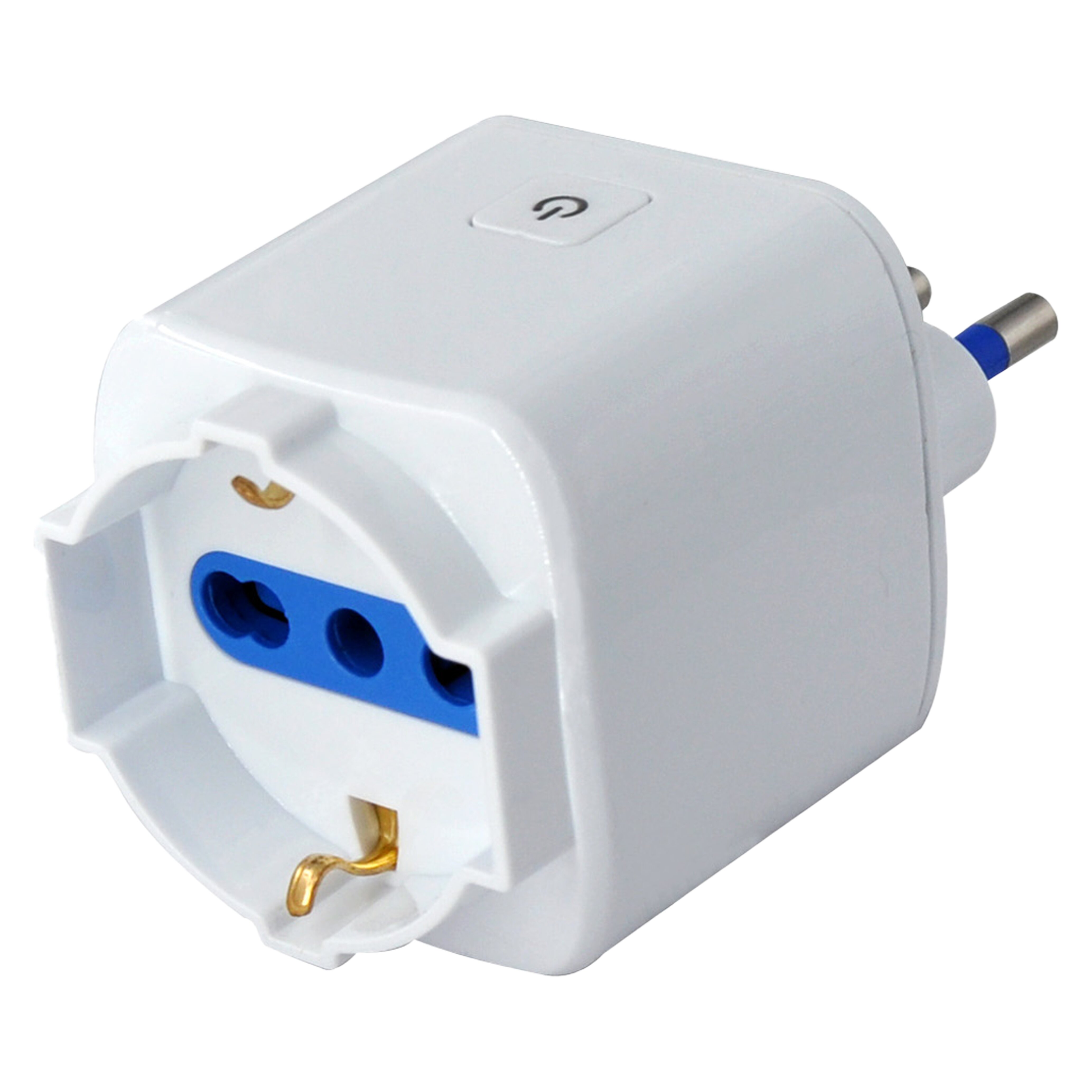 Adattatore di sistema 16A SMART. Con comando WI-FI e comando manuale. Pulsante illuminato ON/OFF. Richiede rete WI-FI casalinga e APP TUYA. Compatibile con gli assistenti virtuali. Spina 16A 2P+T tipo S17. Presa Schuko/bivalente 10/16A tipo P17/11-30. Colore Bianco. Prodotto in tecnopolimero autoestinguente V0 (Norma UL94) ad elevata resistenza ai raggi UV. Spinotti in ottone nichelato protetti. Alveoli protetti da contatti accidentali. Tensione nominale: 250 V~ 50Hz. Resistenza al calore anomalo (GWT norma IEC 6069532-11): fino a 750°C. Grado di protezione: IP20. Temperatura d’impiego: -15°C +35°C.