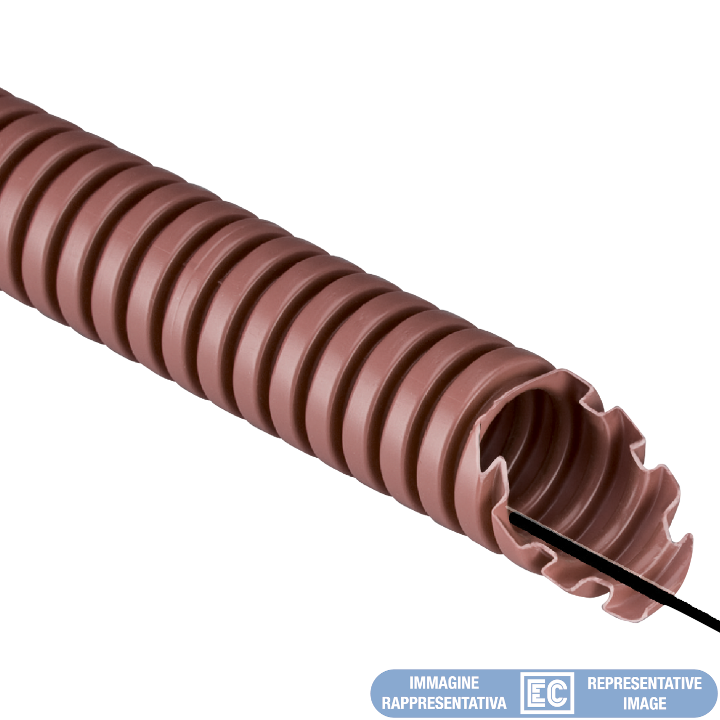 Tubo protettivo corrugato realizzato in tecnopolimero antiurto a base di PVC. Resistenza alla propagazione della fiamma: autoestinguente in meno di 30". Resistenza al calore anomalo: fino a 960° (GWT Norma IEC 60695-2-11). Resistenza allo schiacciamento 750 N. Resistenza d'isolamento 100 MΩ a 500 V per 1 minuto. Rigidità Dielettrica 2000 V a 50 Hz per 15 minuti. Classificazione: medio -33212 secondo la norma EN 61386-1, EN 61386-22. Non esente da microfori. Non adatto per cemento liquido.