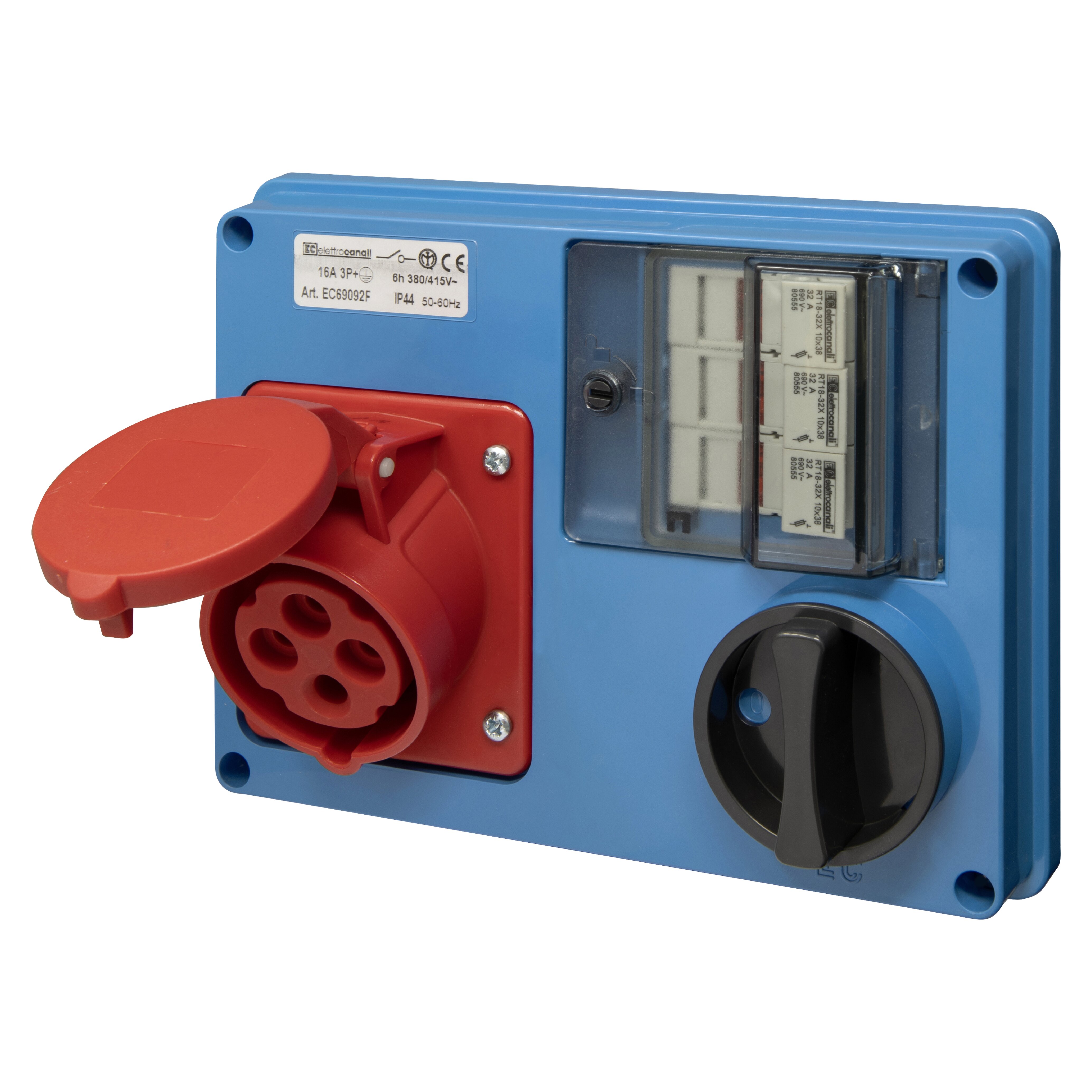 PANEL-MOUNT HORIZ. INTERLOCKED SOCKET WITH FUSE HOLDER IP44 380V 3P+E 16A