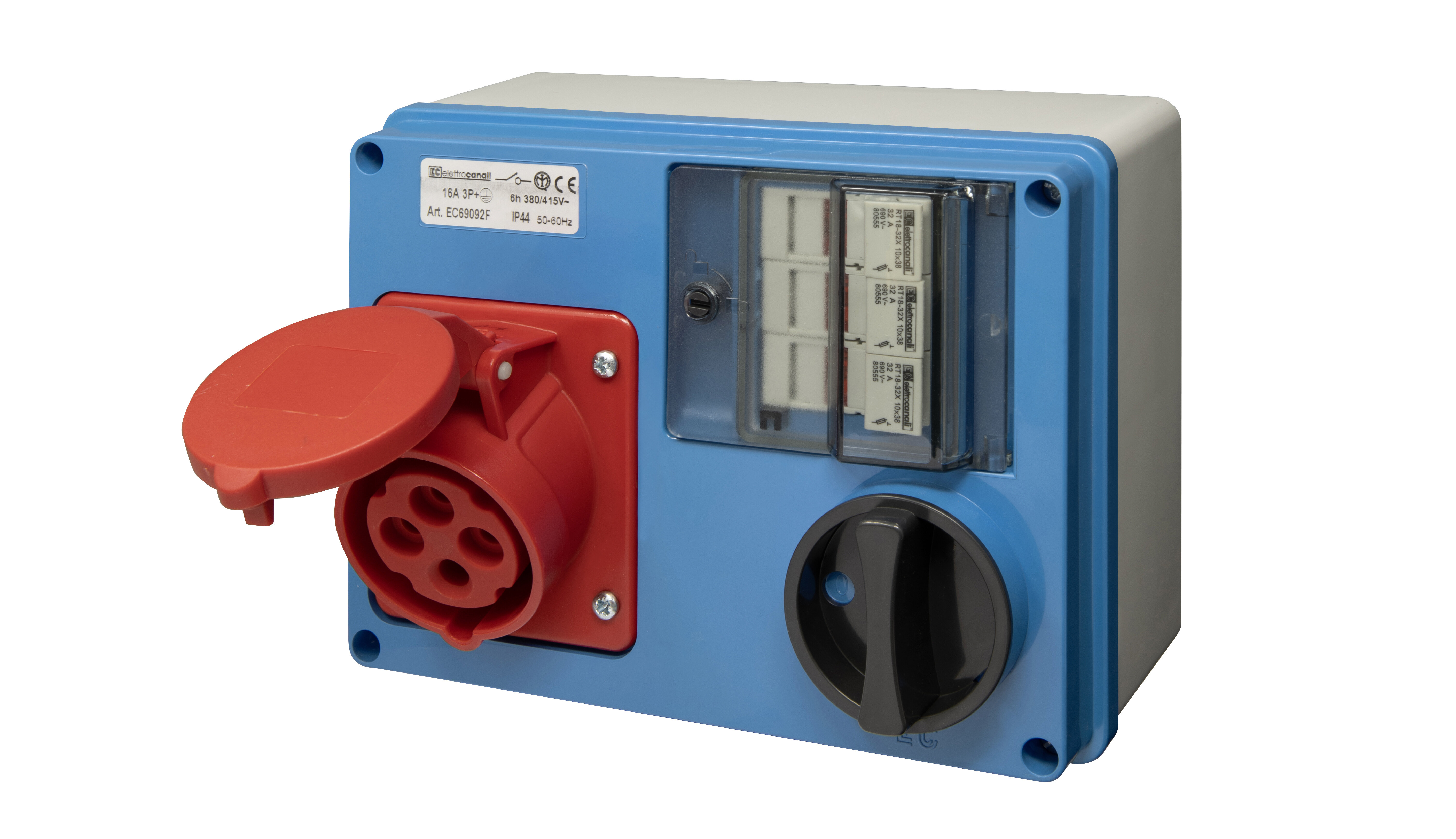 WALL-MOUNT HORIZ. INTERLOCKED SOCKET WITH FUSE HOLDER IP44 220V 2P+E 32A