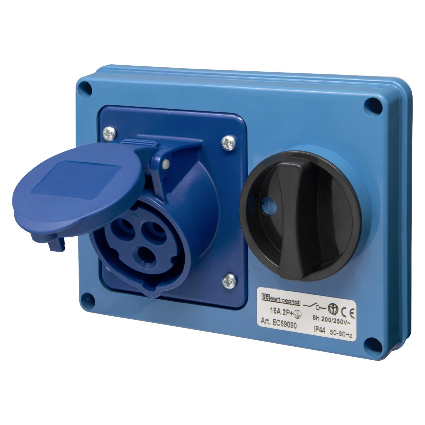 PANEL-MOUNT HORIZ. INTERLOCKED SOCKET IP44 220V 2P+E 16A