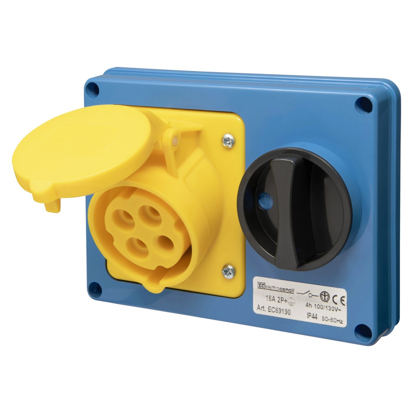 PANEL-MOUNT HORIZ. INTERLOCKED SOCKET IP44 110V 2P+E 16A