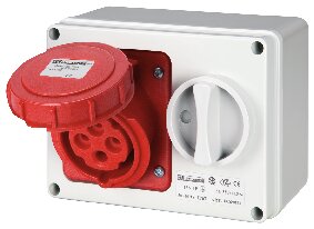 WALL-MOUNT HORIZ. INTERLOCKED SOCKET IP65 380V 3P+E 16A