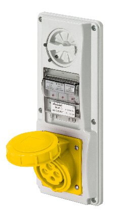 PANEL-MOUNT VERT. INTERLOCKED SOCKET WITH FUSE HOLDER IP65 110V 2P+E 16A