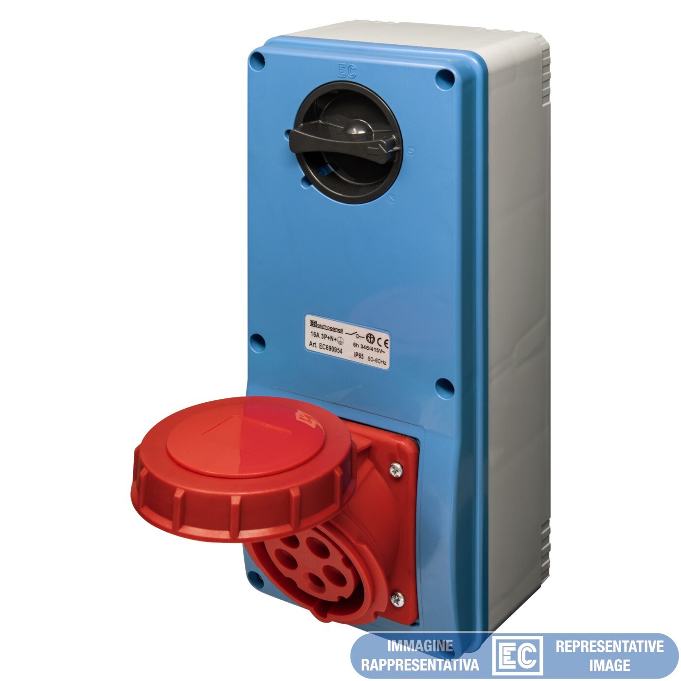 WALL-MOUNT VERT. INTERLOCKED SOCKET IP65 110V 2P+E 16A