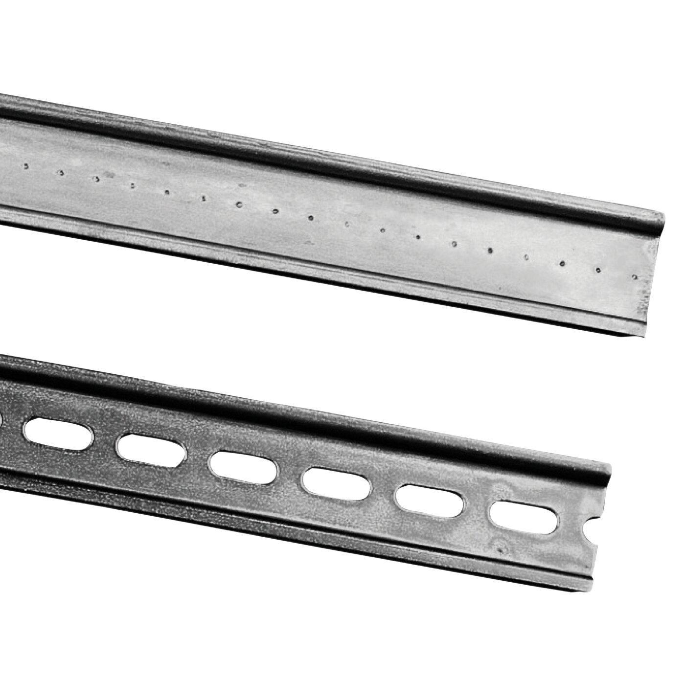 DIN rails made of corrosion-resistant tropicalized galvanized steel. Compliant with DIN EN 50022.