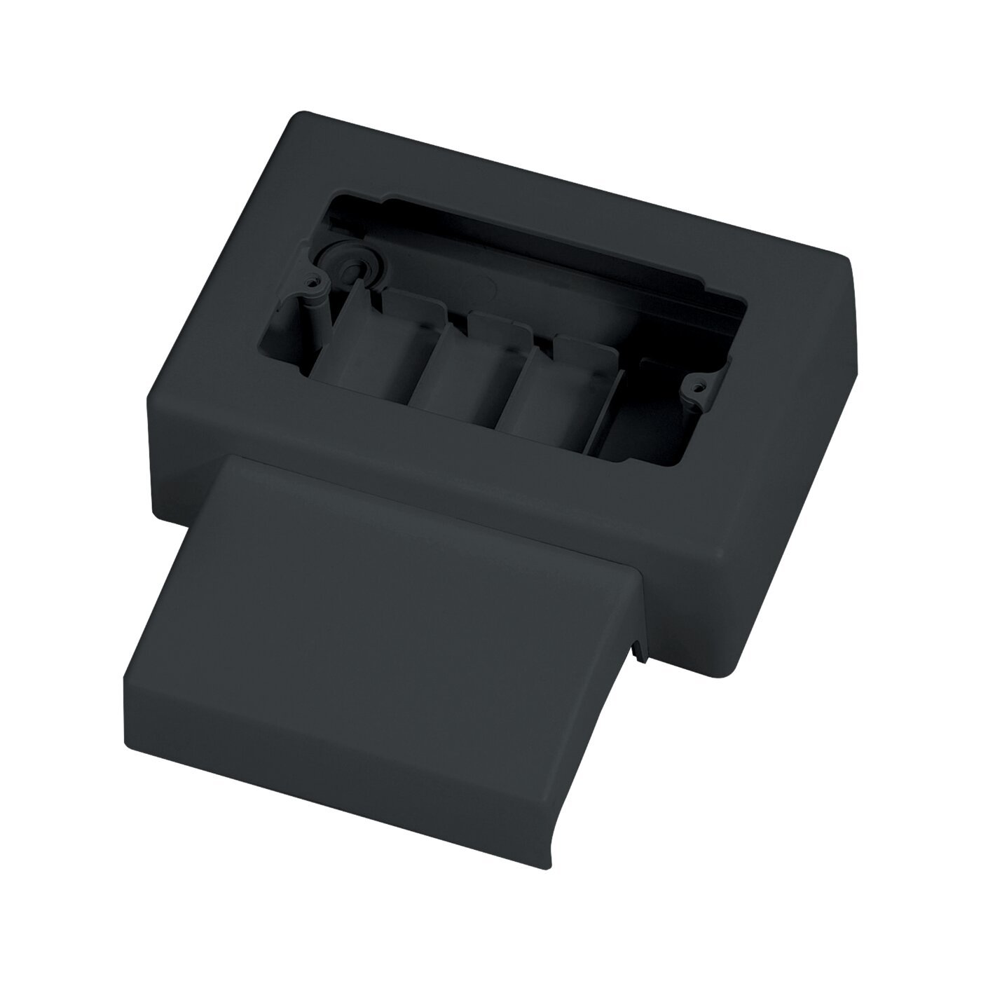 The 4-module 108 mm distance between centers appliance box can be used for the installation of up to 4 Italian standard appliances or 2 multi-standard sockets. The large internal volume allows for the installation of any appliance. The box is composed of three assembled parts: the lower part, which snaps onto the trunking and the wall with 4 screws, and serves as an insulating base and a grid separating the various circuits. The upper part is appropriately shaped to accommodate the appliance mounting frames. The trunking cover, in addition to its protective function, gives the whole a harmonious and elegant shape.