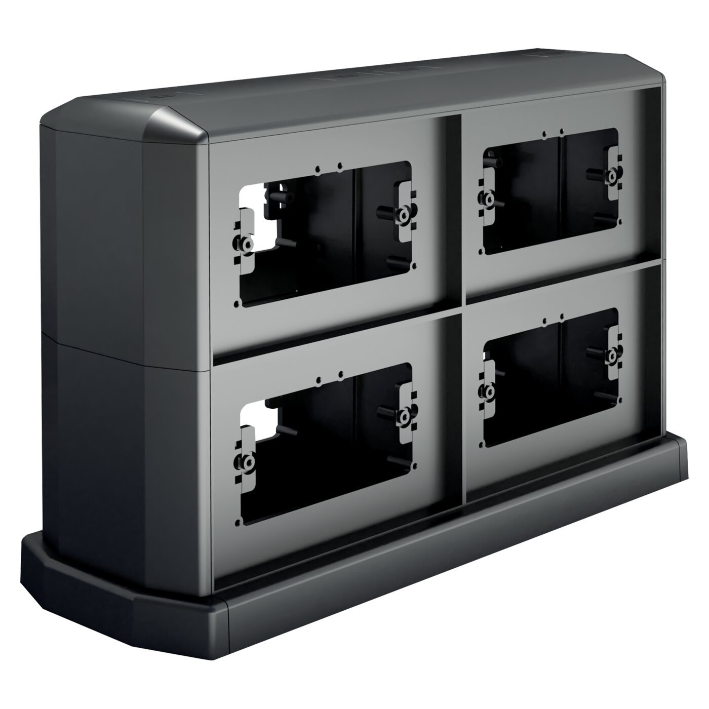Vertical expansion for double-sided turret made of shockproof technopolymer. Designed for 4+4 fixtures with 108.5 mm spacing or for 2+2 fixtures with 60 mm spacing. End cap included for single-sided use.