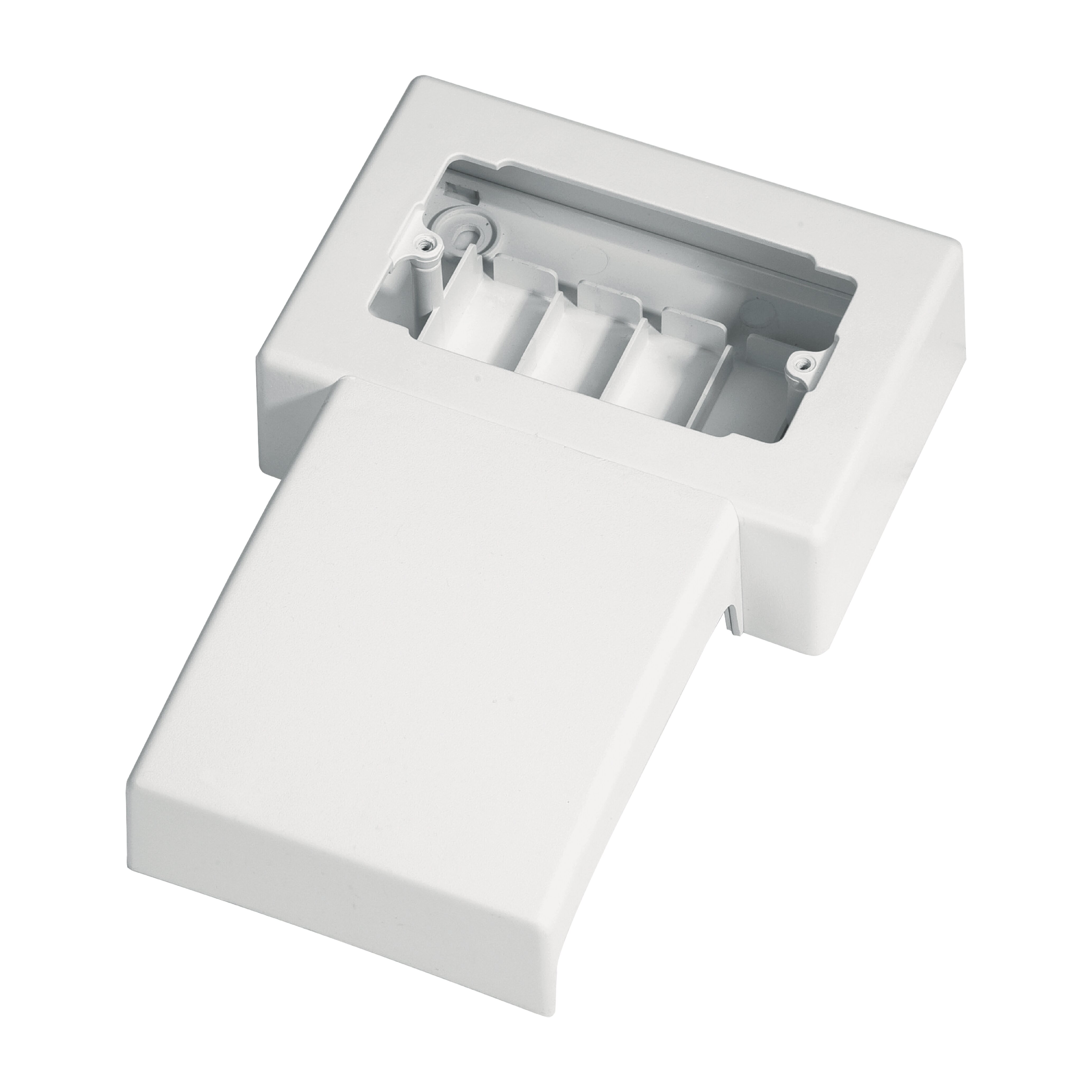 The 4-module 108 mm distance between centers appliance box can be used for installing up to 4 Italian standard appliances or 2 multi-standard sockets. The large internal volume allows for the installation of any appliance. The box is composed of three assembled parts: the lower part, which snaps onto the trunking and the wall with 4 screws, and serves as an insulating base and a grid separating the various circuits. The upper part is specially shaped to accommodate the appliance mounting frames. The trunking cover, in addition to its protective function, gives the whole a harmonious and elegant shape.