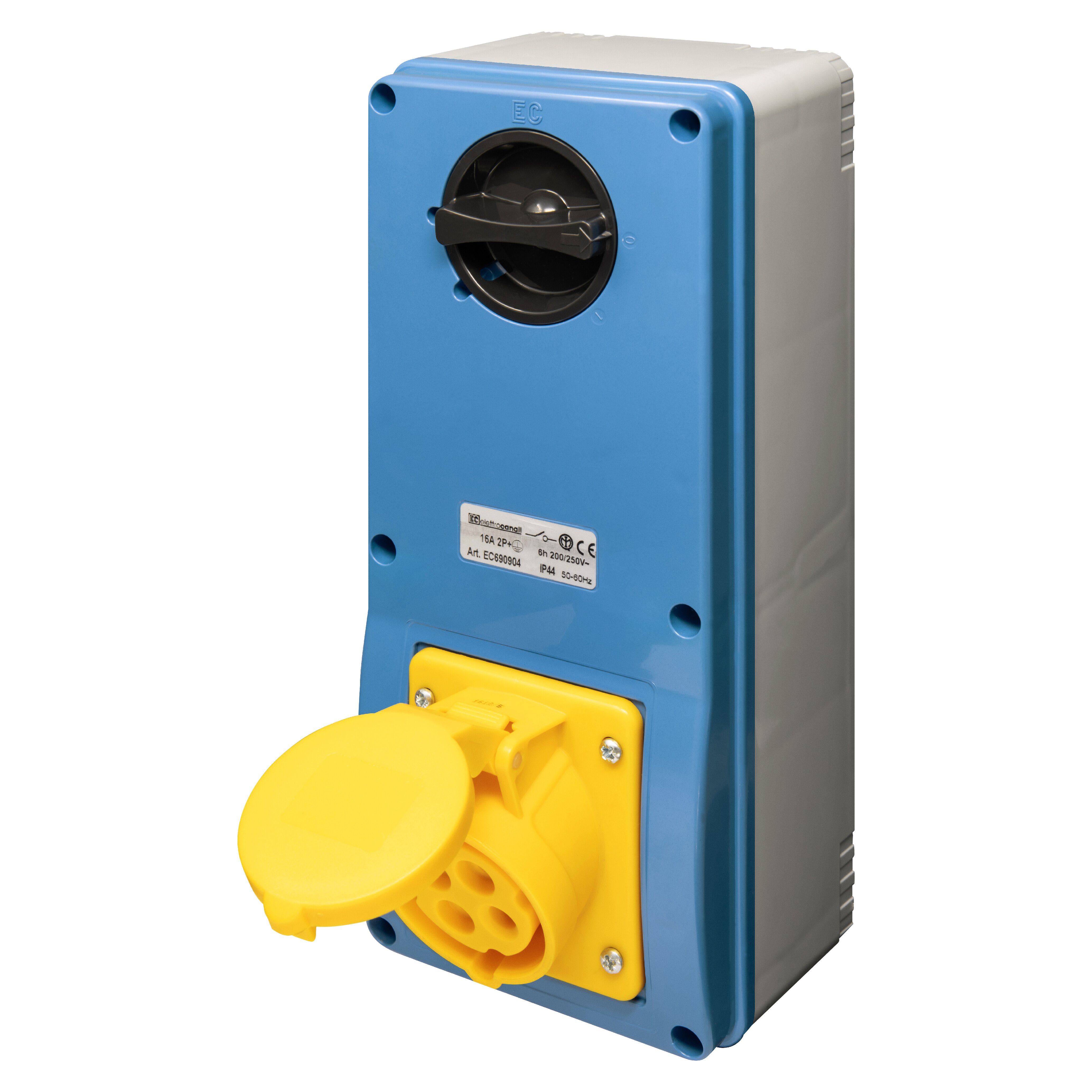WALL-MOUNT VERT. INTERLOCKED SOCKET IP44 110V 2P+E 16A