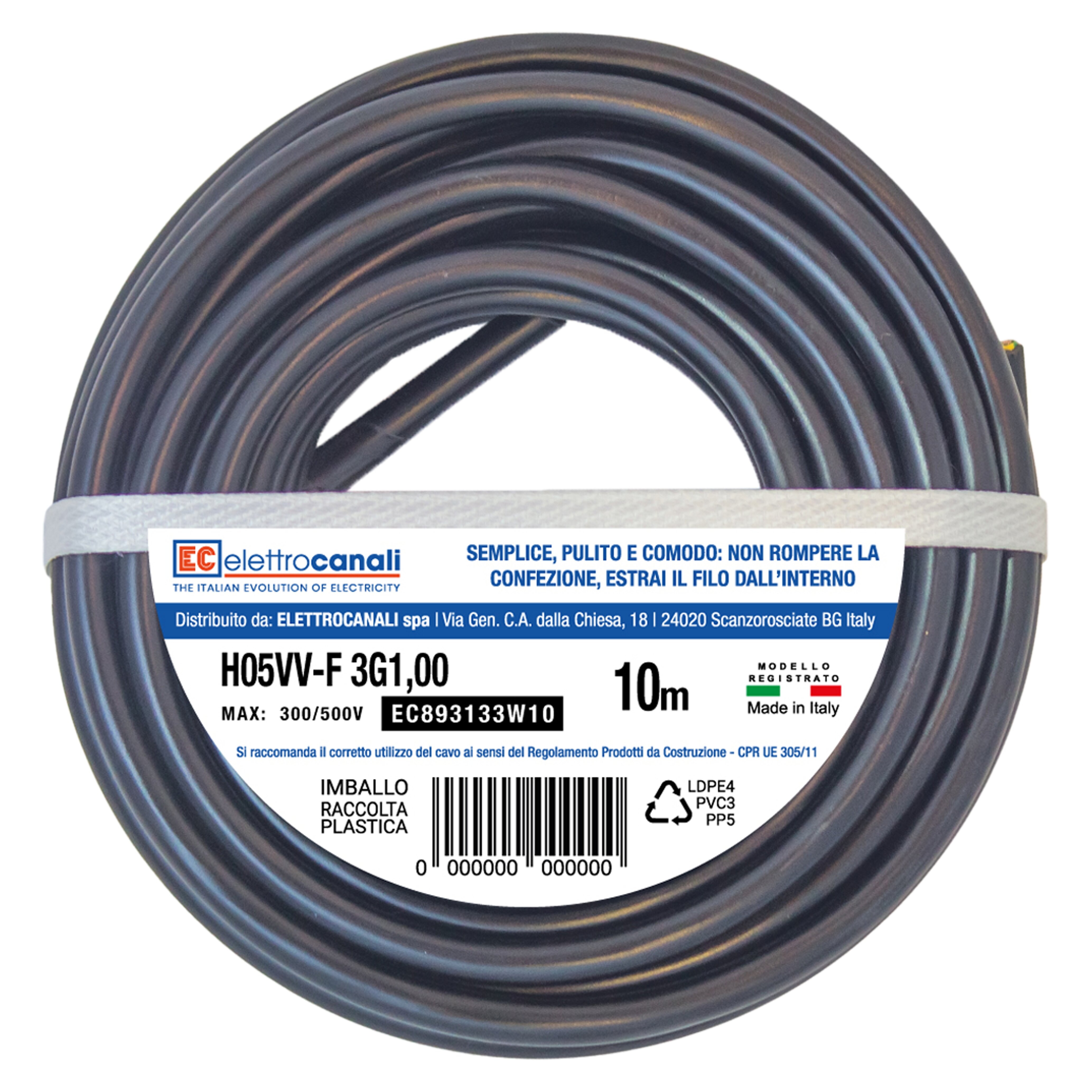 MULTIPOLAR CABLE H05VV-F 3Gx1 mm² BLACK 10 m