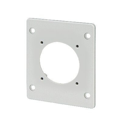 FLANGE FOR PANEL-MOUNT SOCKETS – 50X50 mm – CENTRE HOLE DISTANCE 38X38 mm